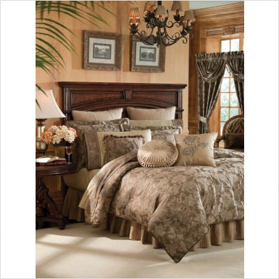 2AM-003O0-7184/273 Size: Queen Features: -Available in Queen, King or California King sizes. -Queen size set includes standard pillow sham, King / California King sizes set include King pillow sham. -Includes 1 comforter, 1 bed skirt and 2 pillow shams. -Material: 100pct polyester face, 100pct cotton back. -Color: Taupe. -Essence of poise and elegance. -Ornate paisley and floral motifs grace the comforter, with fresh aqua detailing on a neutral ground, and a multicolored twist cord trim. -Euro shams in a soothing champagne hue, complete with twist cord trim. -Decorative pillows are adorned with hanging tassel trim, floral motifs, and pleated and button detailing, bringing the ensemble together effortlessly. -Dry clean only.
