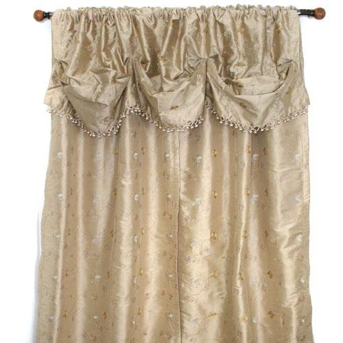 - Croscill Brittany Tucked Window Valance is a sunny, fresh, and inviting window treatment that expresses gracious living at its best. Delicate florals and foliage on a light gold faux silk ground are the main focus of Brittany. Shades of ivory, pale lavender, and bronze give warmth to the color palette. The ball fringe accents makes this tucked valance the perfect accent to your room. Tucked Valance Size 75" x 14".