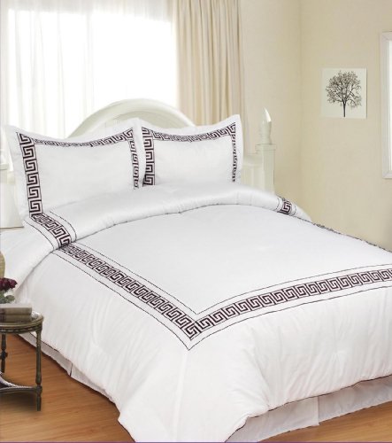- Modernize your bedroom with this 4-piece comforter set; The crisp white cotton and classical Greek Key embroidery are sure to brighten any room