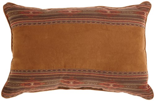 Croscill's "Yosemite" ensemble draws inspiration from nature's rustic, natural views, featuring dynamic patterns through intricate stitching techniques. The "Yosemite" decorative pillows feature leather accents, unique borders, and stylized geometric patterns, in deep naturalistic tones. The face of the boudoir pillow features a brown suede in the center and an Aztec stripe along the both the top and bottom, and reverses to a small diamond design giving this pillow two different looks to each side. The boudoir pillow measures 22-inch wide by 15-inch tall and is trimmed on all edges with a 1/4-suede piping. The inside of the pillow is 100-percent virgin polyester fiberfill. Coordinating "Yosemite" bedding and window coverings are available,